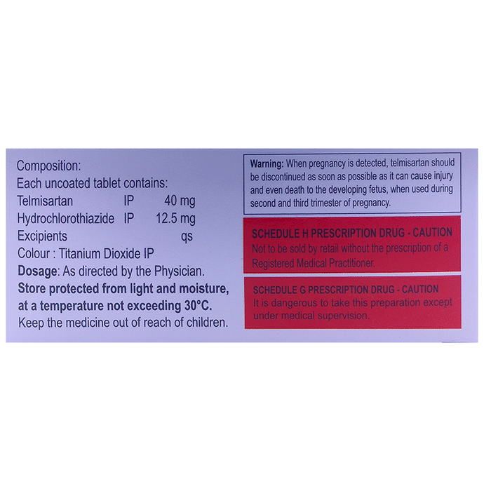 Salt Composition Telmisartan (40mg) + Hydrochlorothiazide (12.5mg)