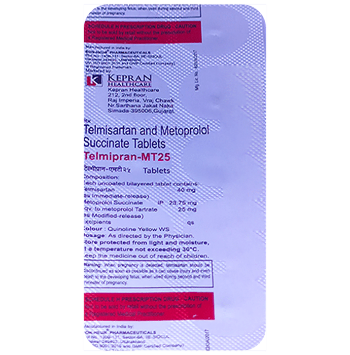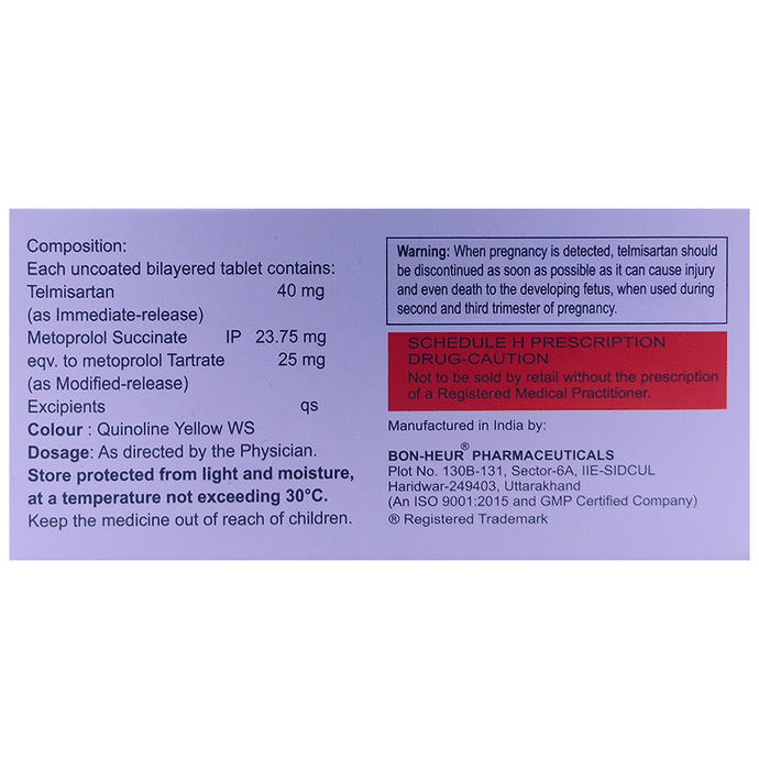 Salt Composition Telmisartan (40mg) + Metoprolol Succinate (25mg)