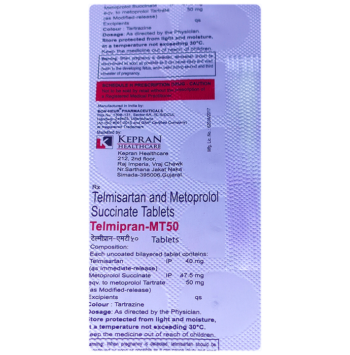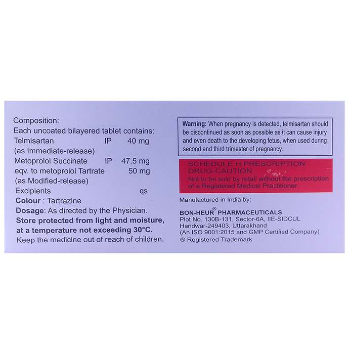 Salt Composition Telmisartan (40mg) + Metoprolol Succinate (50mg)