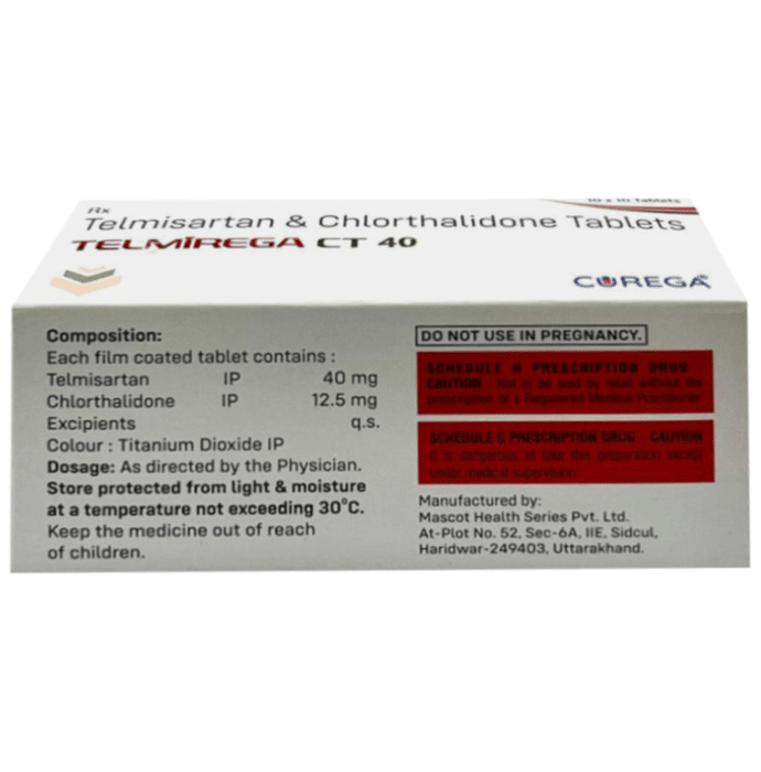 Salt Composition Telmisartan (40mg) + Chlorthalidone (12.5mg)