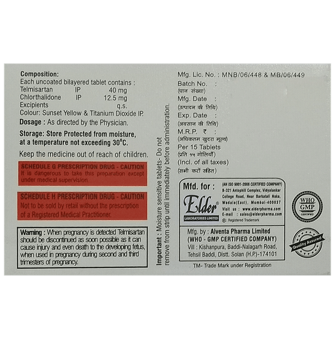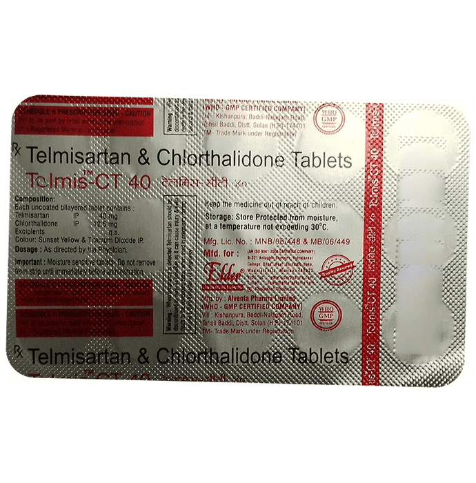 Salt Composition Telmisartan (40mg) + Chlorthalidone (12.5mg)
