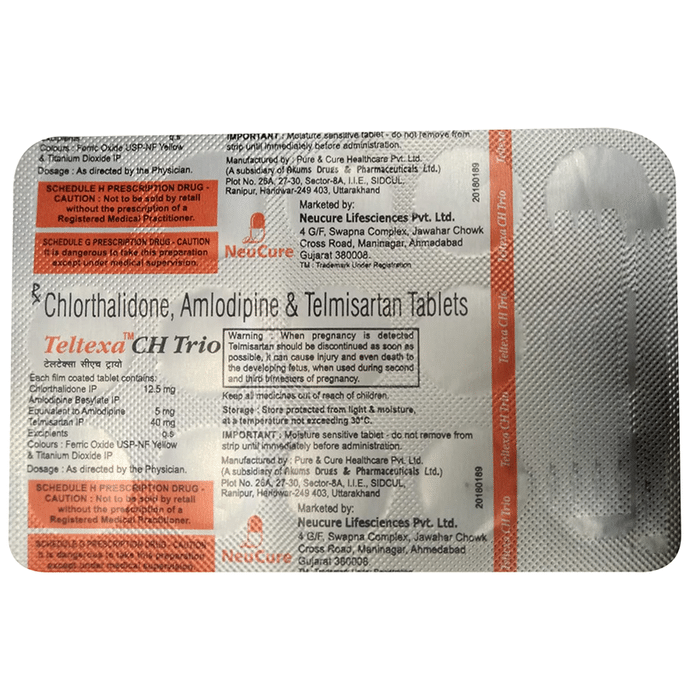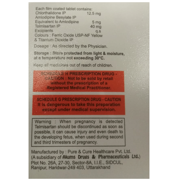 Salt Composition Telmisartan (40mg) + Amlodipine (5mg) + Chlorthalidone (12.5mg)
