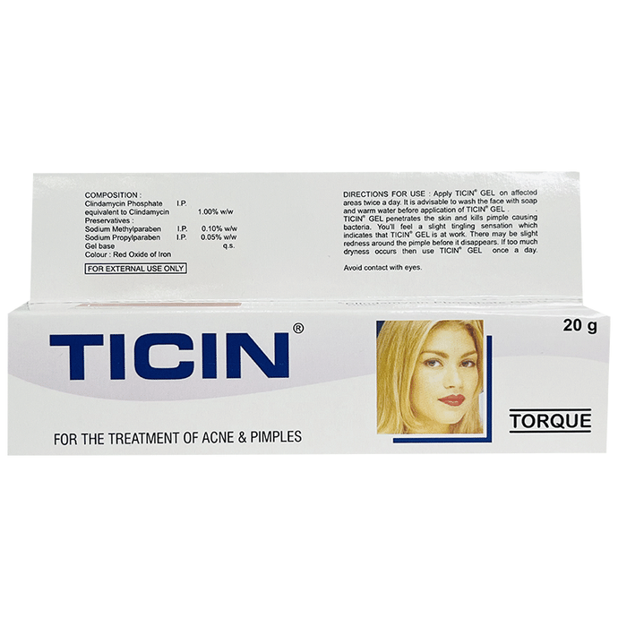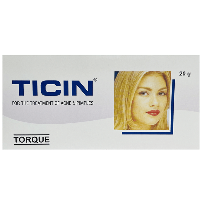Q. How to use Ticin Cream?::: Before using Ticin Cream clean and dry the affected area. Gently and thoroughly massage it into the skin. Be careful not to get the medication in your eyes or mouth. If Ticin Cream gets in your eyes accidentally wash with plenty of water and call your doctor if your eyes are irritated.| Q. How long should I use Ticin Cream?::: Use Ticin Cream for as long as your doctor tells you. You may have to use it for several months to clear your acne completely. Even the initial benefits may take several weeks to appear following which you shall be able to note a gradual but definite improvement. Usually Ticin Cream should be used for a maximum of 12 weeks. You may need to use more than one tube of Ticin Cream during each course of treatment.| Q. What does Ticin Cream do for acne?::: Ticin Cream treats and prevents acne by stopping the growth of bacteria (Propionibacterium acnes) which causes it. Acne is an extremely common skin condition. During adolescence grease glands in the skin produce extra grease in response to normal amounts of sex hormones in the body which can cause blocked pores (i.e. blackheads). When this happens the pores are invaded by bacteria. As a result certain chemicals are produced which go into deeper parts of the skin to produce red spots filled with pus called acne. | Q. Is Ticin Cream effective?::: Ticin Cream is effective if used in the dose and duration advised by your doctor. Do not stop taking it even if you see improvement in your condition. If you stop using Ticin Cream too early the symptoms may return or worsen.| Q. Can Ticin Cream cause skin rash?::: The common side effects of Ticin Cream are irritation swollen pale red bumps and dryness. A scaly skin rash may occur rarely with the use of Ticin Cream. You must consult your doctor if it bothers you.| Q. What precautions do I need to take while using Ticin Cream?::: Be careful not to get Ticin Cream into your eyes or mouth. If you happen to get it in your eyes rinse off with plenty of water immediately and contact your doctor. You must not use Ticin Cream if you are allergic to it or any of its ingredients. Tell your doctor if you notice any allergic reaction while using it for the first time. Inform your doctor if you are taking any medicines regularly to prevent any allergic reaction with other medicines. Do not cover the area being treated with Ticin Cream with a bandage as this may increase absorption of this medicine and increase the side effects. Do not use more than what is recommended to relieve your symptoms faster. Using more than what is advised will only increase the side effects. Let your doctor know if you are planning to conceive. Pregnant and breastfeeding mothers should use Ticin Cream only if prescribed by the doctor.| Q. Is Ticin Cream effective?::: Ticin Cream is effective if used in the dose and duration advised by your doctor. Do not stop taking it even if you see improvement in your condition. If you stop using Ticin Cream too early the symptoms may return or worsen.