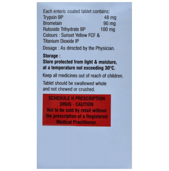 Salt Composition Bromelain (90mg) + Trypsin (48mg) + Rutoside (100mg)