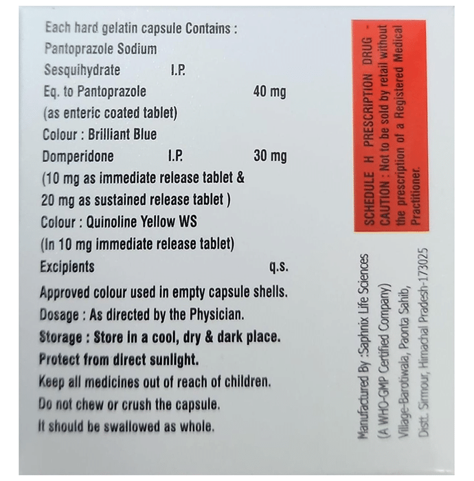 Salt Composition Domperidone (30mg) + Pantoprazole (40mg)