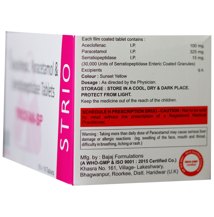 Salt Composition Aceclofenac (100mg) + Paracetamol (325mg) + Serratiopeptidase (15mg)