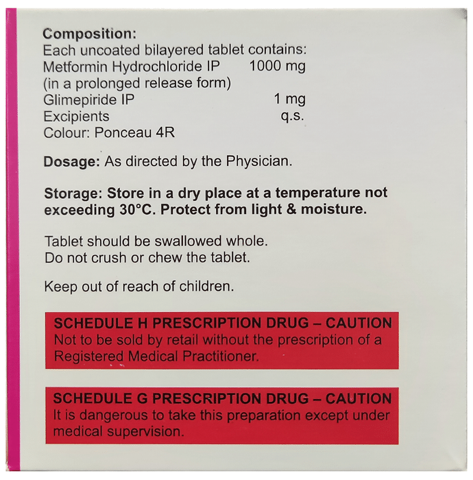 Salt Composition Glimepiride (1mg) + Metformin (1000mg)