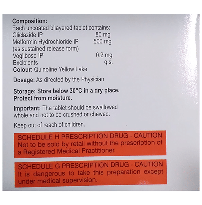 Salt Composition Voglibose (0.2mg) + Metformin (500mg) + Gliclazide (80mg)