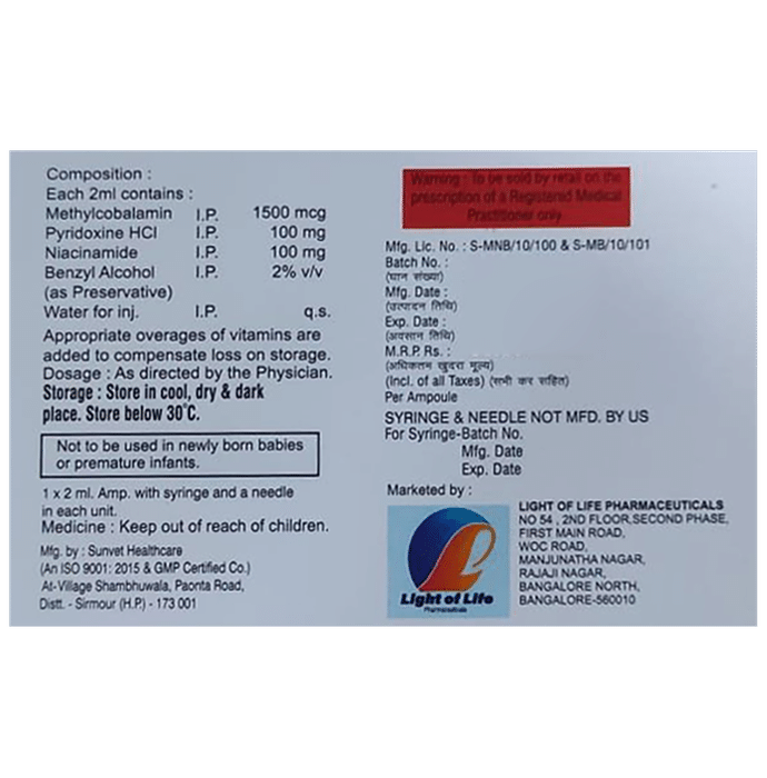 Salt Composition Methylcobalamin (1500mcg) + Niacinamide (100mg) + Vitamin B6 (Pyridoxine) (100mg)