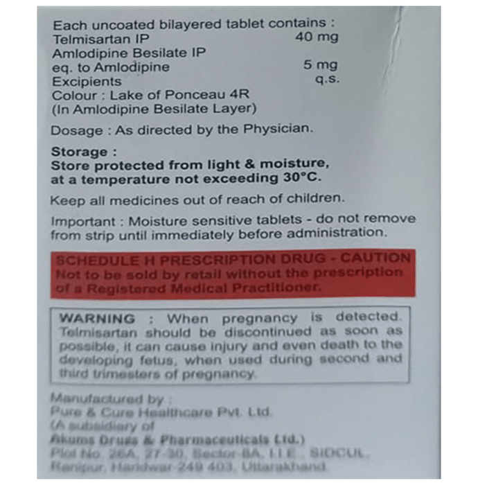 Salt Composition Telmisartan (40mg) + Amlodipine (5mg)