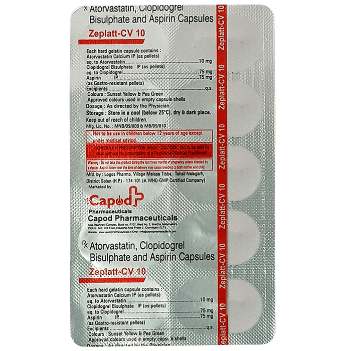 Salt Composition Aspirin (75mg) + Atorvastatin (10mg) + Clopidogrel (75mg)