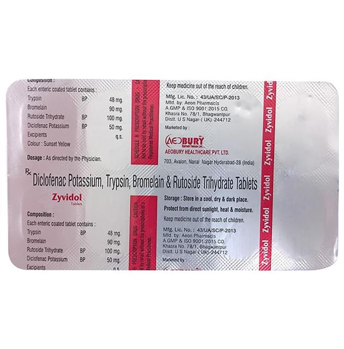 Salt Composition Trypsin (48mg) + Bromelain (90mg) + Rutoside (100mg) + Diclofenac (50mg)